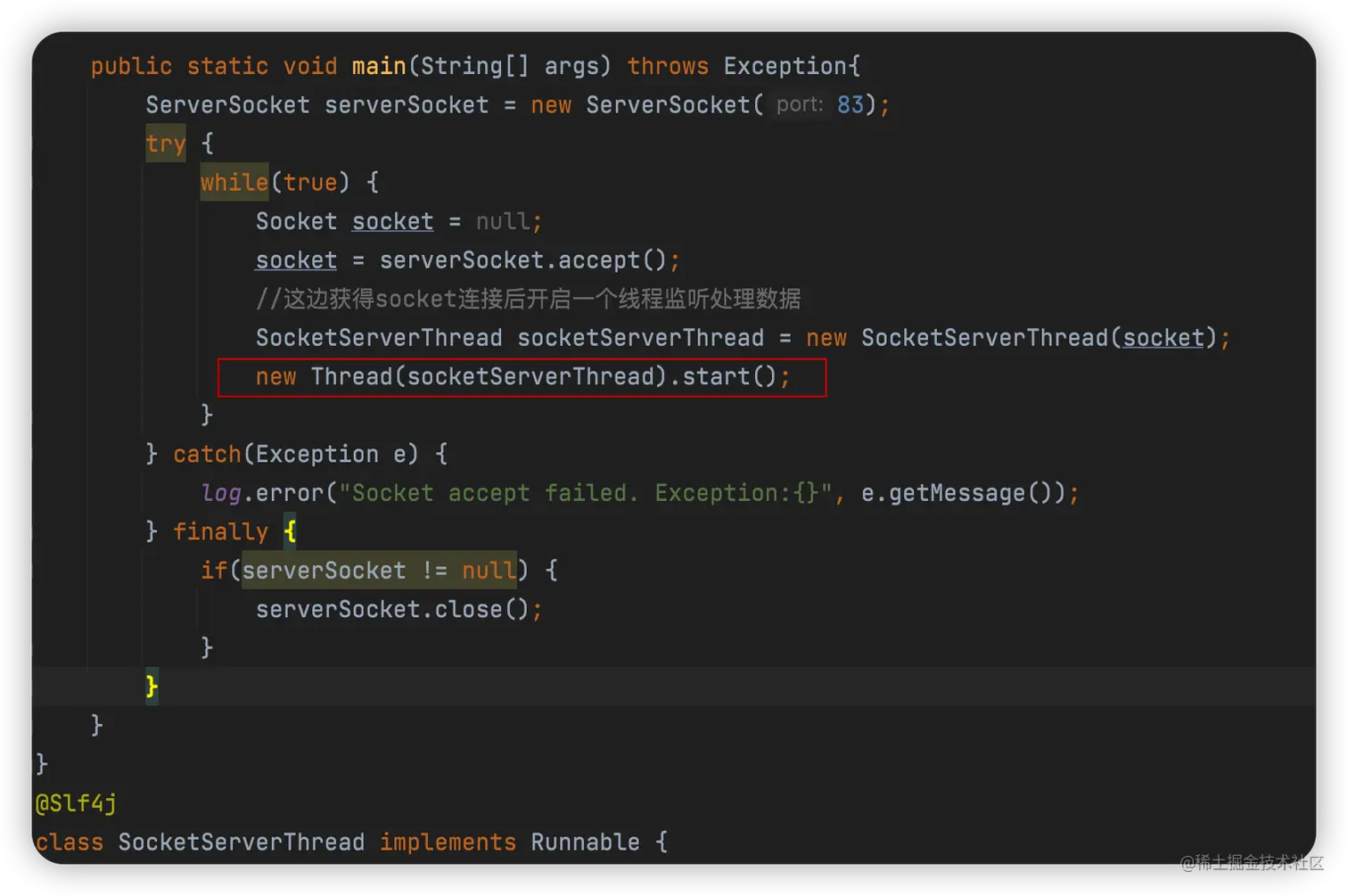 看的出来,每开创一个socket连接请求都会,新建一个线程Thread,按道理来说这时没有问题的哦,但是还是有一定的弊端的,比如: