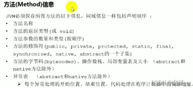 方法区用于存储已被虚拟机加载的类型信息,常量,静态变量,被即时编译器编译后的代码缓存。 也就是存放类型信息、常量、静态变量、即时编译器编译后的代码缓存、域信息、方法信息等。