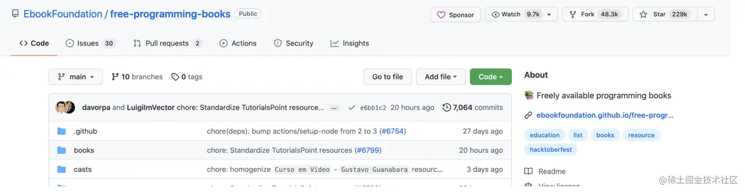推荐几个在 GitHub 上点赞比较高质量电子书的开源项目,这些开源项目包含了近千本计算机编程书籍。