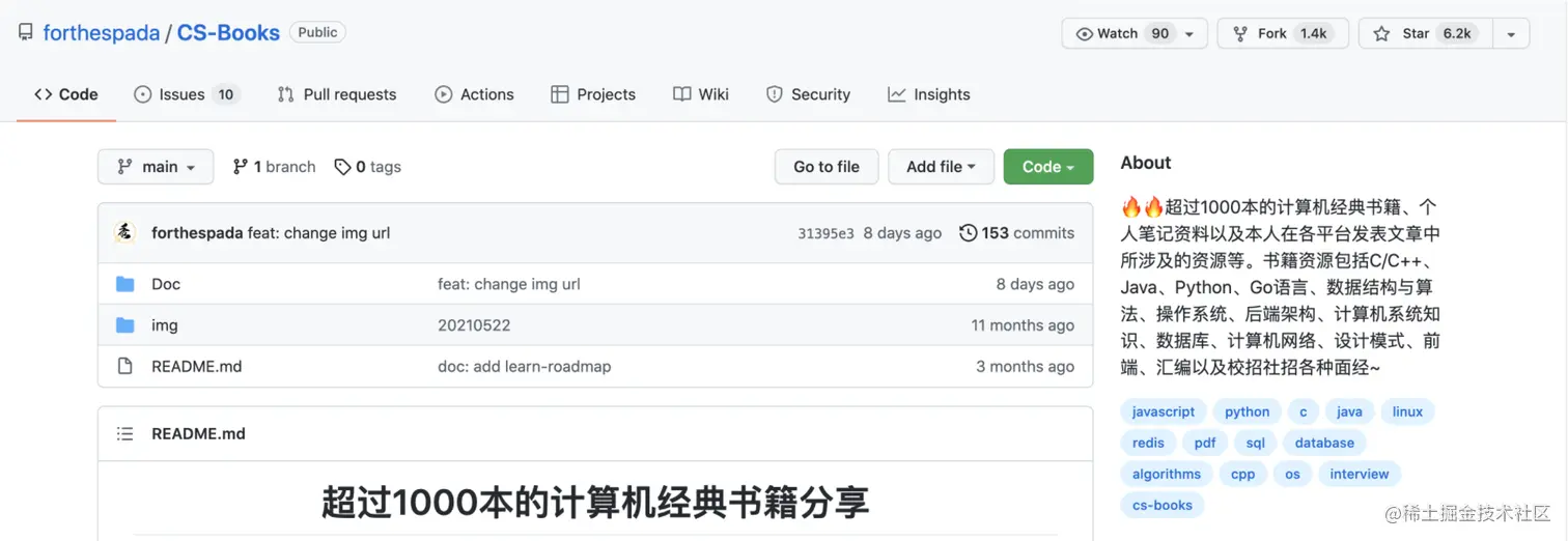 CS-Books:包含🔥🔥超过1000本的计算机经典书籍、个人笔记资料以及本人在各平台发表文章中所涉及的资源等。书籍资源包括C/C++、Java、Python、Go语言、数据结构与算法、操作系统、后端架构、计算机系统知识、数据库、计算机网络、设计模式、前端、汇编以及校招社招各种面经~