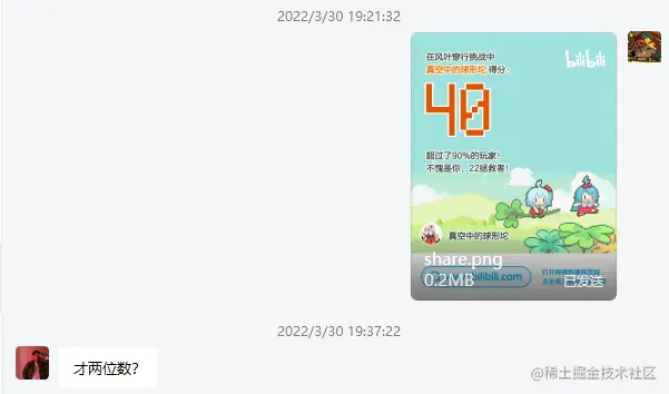 于是放下手中的外卖玩了一会,仿佛回到了当初在电脑课上玩 chrome 小恐龙的日子,遂将其分享给好友: