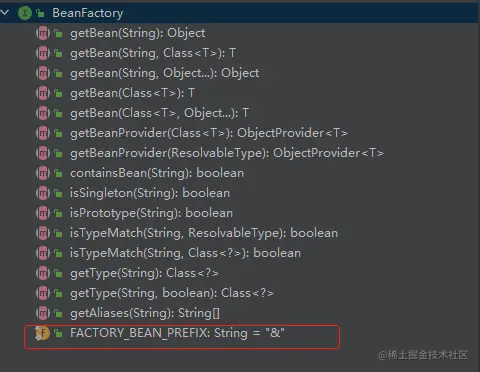 默认情况下,如果直接调用 getBean 方法,将会返回一个工厂创造的对象,如果想获取 Bean 本身,那么需要添加 & 符号作为前缀进行处理。
