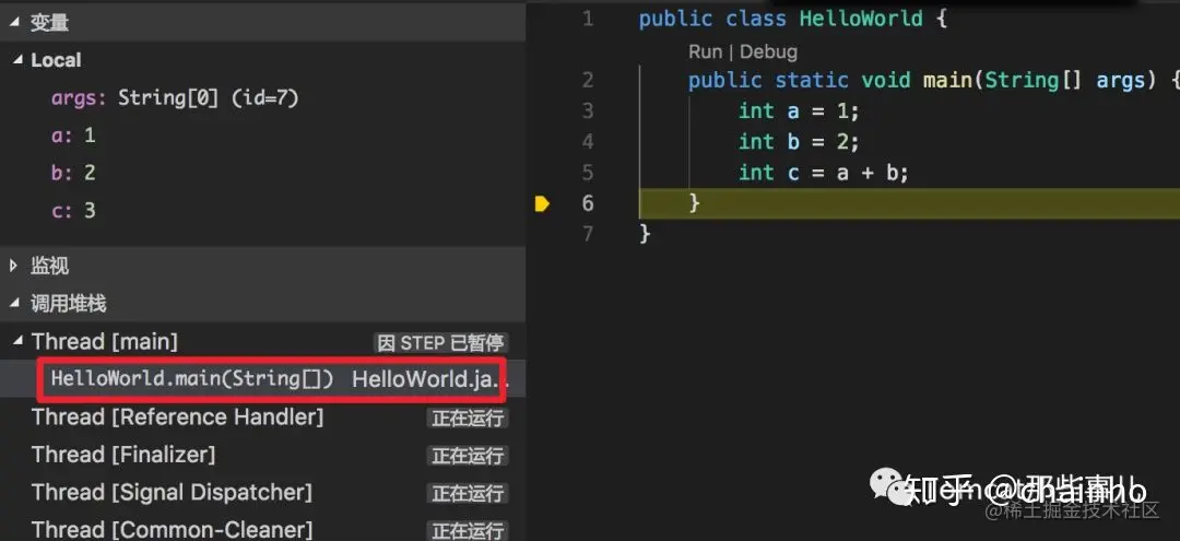 既然是栈,那栈里要放点什么?没错,是栈帧,英文是 Frames,就是咱们在使用 IDE debug 的时候看到的那一层一层的内容。