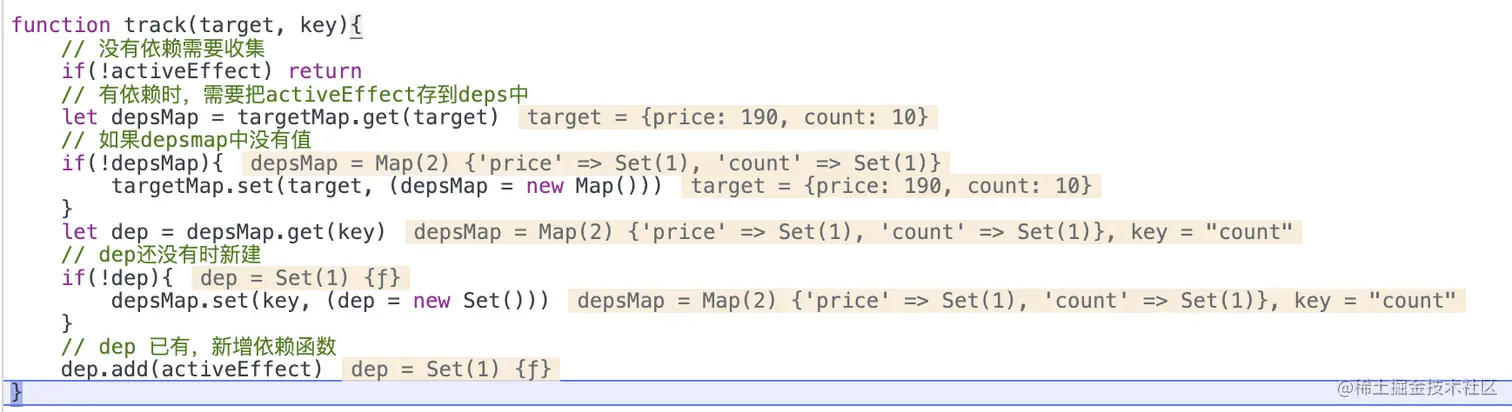 // 此时targetMap.get(target)有值depsMap,是一个map结构