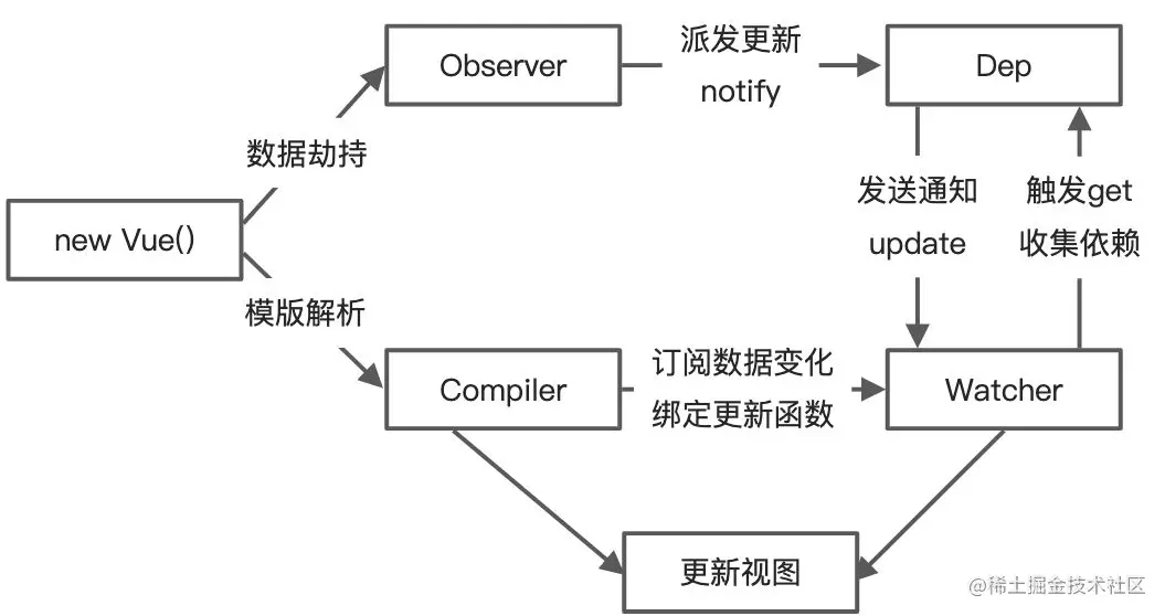 dep通知所有的watcher更新视图 - 自身实例化的时候向