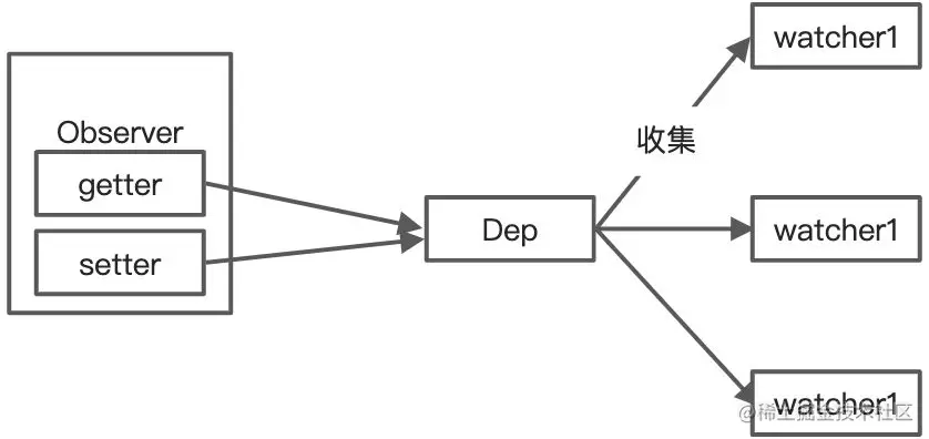 proxy数据劫持- 观察者模式:收集依赖与派发更新,依赖是依赖于每个属性变化的