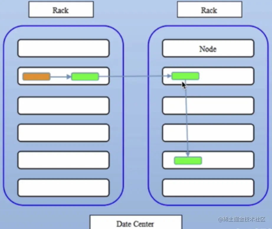- 第二个副本放在和第一个副本不同且随机选择的机架