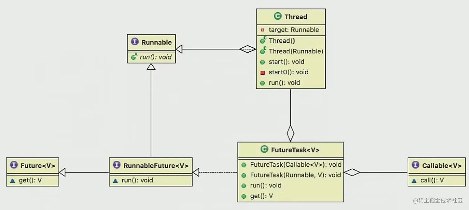 - 从代码的架构来考虑,具体执行的任务(run方法里面的内容)应该是和Thread解耦的,不应该把这两件事情混为一谈;