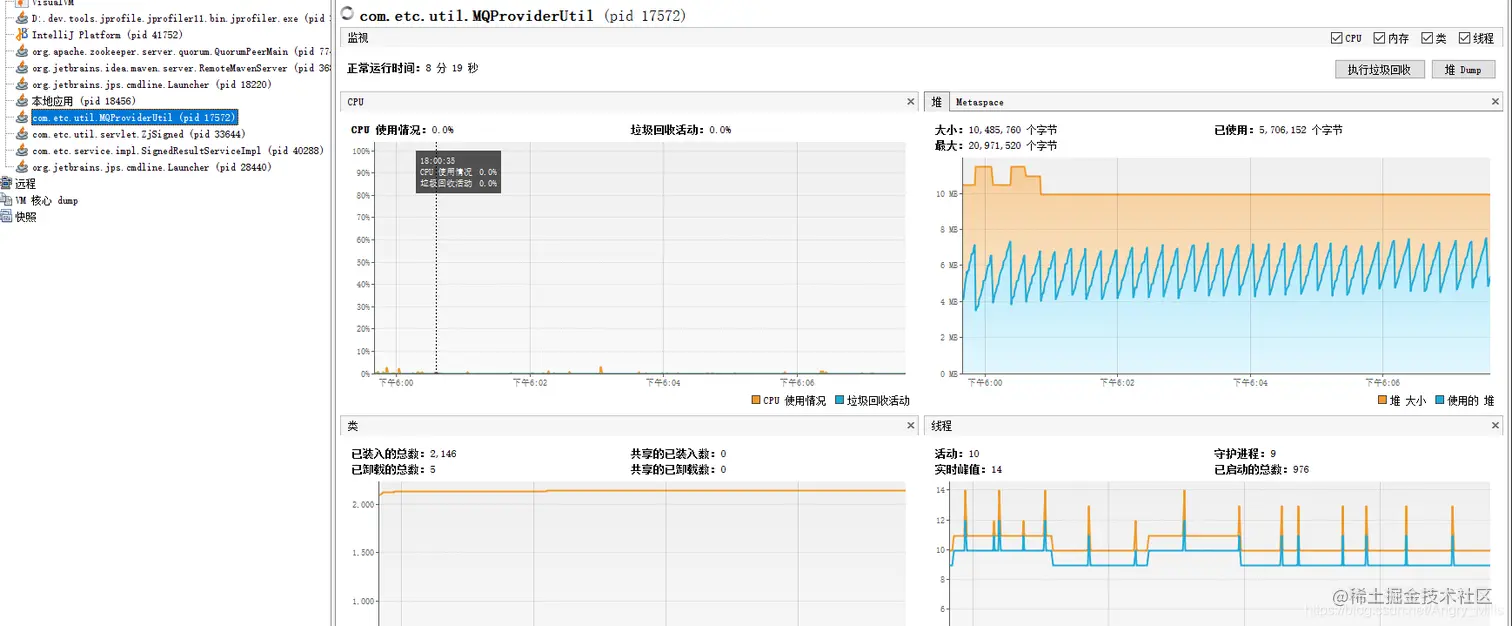 本地启动项目,模拟线上并发量 *2,实测没问题是来得及回收的,如图JVM 回收曲线交替执行正常。
