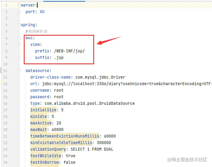 对于这种静态资源,我们需要配置一下静态资源路径,因为我们这边使用的是SpringBoot(2.6.4)的版本,可能跟你之前看到的写法不一样,这一点需要注意。还是yml文件,我们加上: