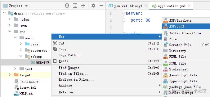 idea默认没法直接右键创建JSP,我们需要做一点操作。