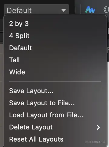 不同视图可以调整位置,保存和恢复视图的布局,在工具栏的layout此处设置: