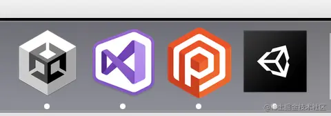 上图最左边为unity hub,最后为unity编辑器。