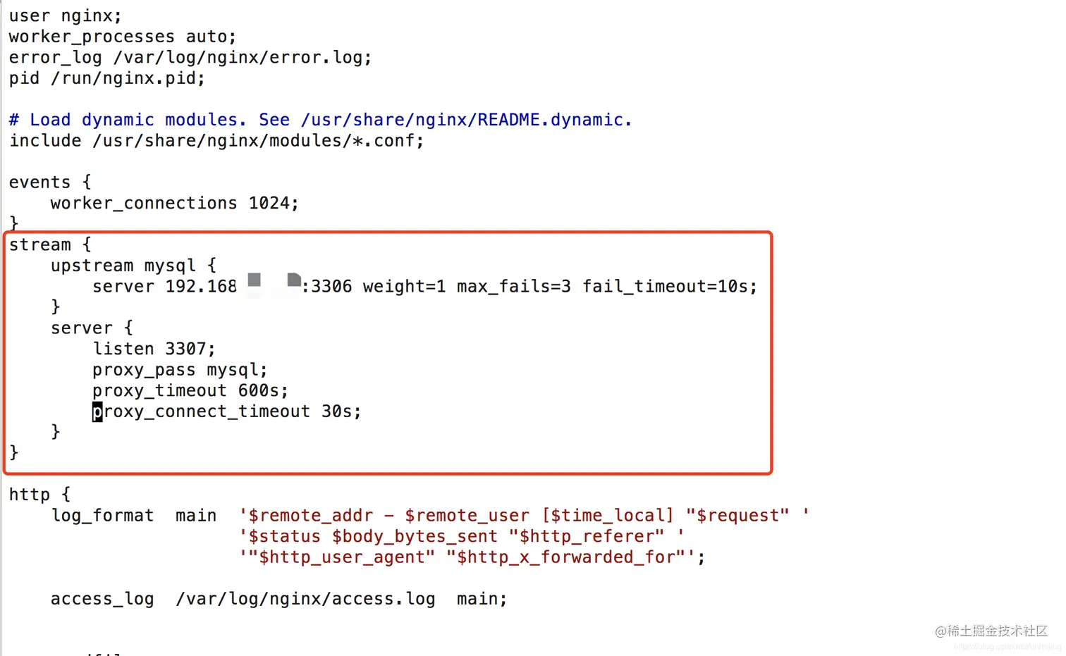 server 192.168.11.20:3306 weight=1 max_fails=3 fail_timeout=10s;