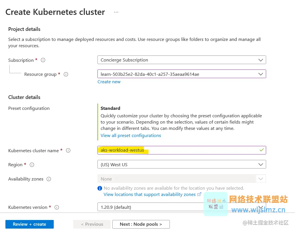 第 8 步:创建 Kubernetes 集群启用虚拟机规模集