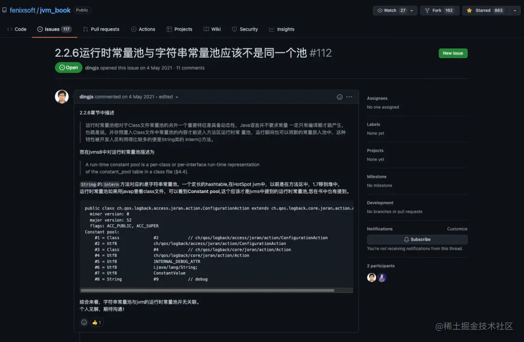 多提一嘴,为了完善方法区这部分内容的介绍,我看了很多文档,还特意去扒了一下《深入理解 Java 虚拟机(第 3 版)》勘误的 issues,简直看到的脑壳疼。。。