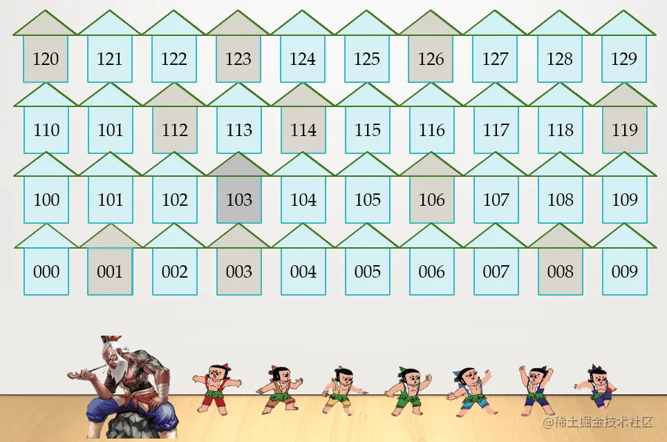 然后爷爷将七张小纸条分给了葫芦娃们,然后他们每个人都在小纸条上记着下一个葫芦娃的房间号。这样虽然几个葫芦娃都不住在一起,但是通过纸条上的房间号就可以依次找到下一个葫芦娃的房间。这样从大娃开始,就可以找到所有的葫芦娃了。