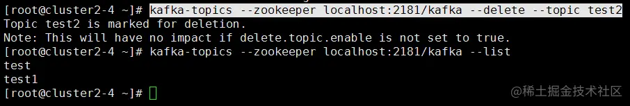 执行命令,即可,此时topic被彻底删除: