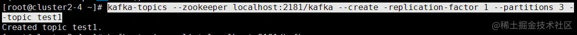 若是上述中的 ZooKeeper Root 的Kafka服务范围为: " / "。则这里的创建主题指令改为: