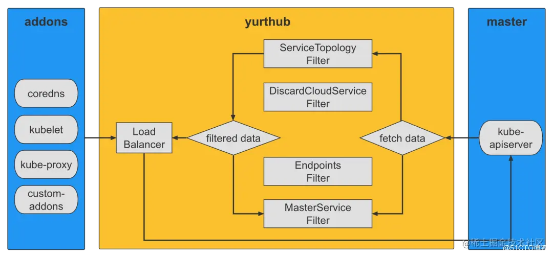 Yurthub 目前包含四种过滤规则,通过 addons 请求的 user-agent,resource,verb 判断经过那个过滤器进行相应的数据过滤。