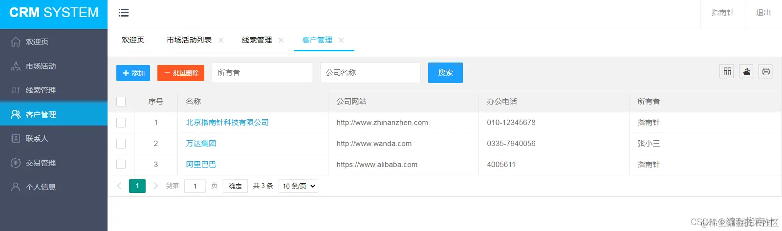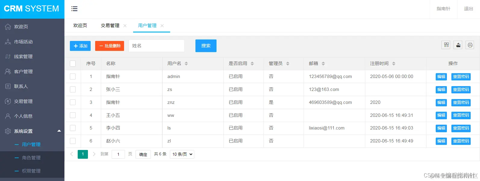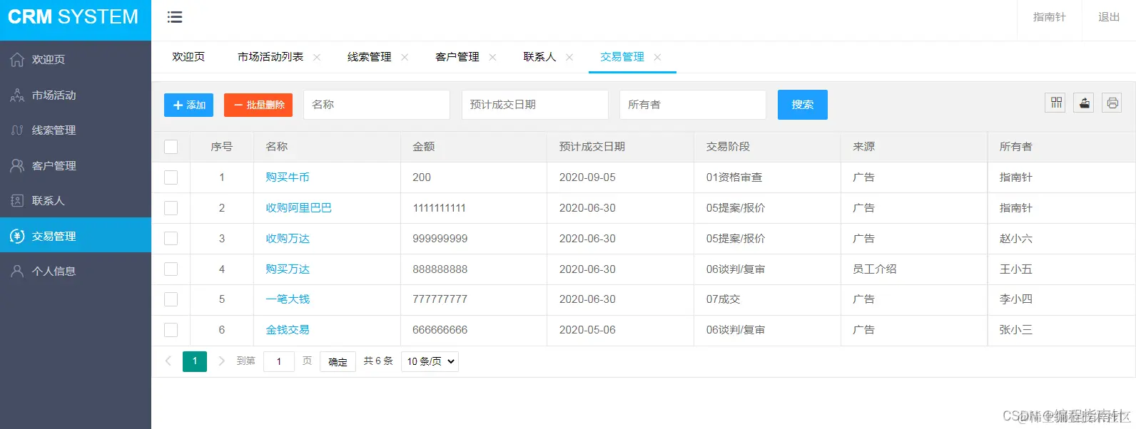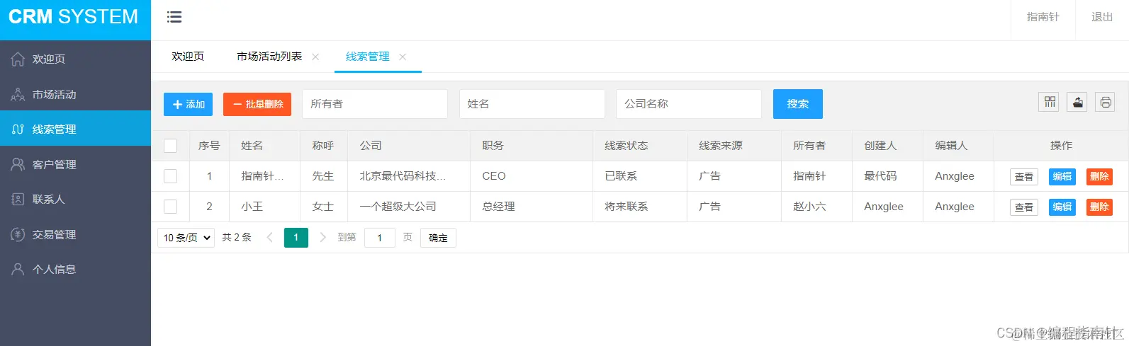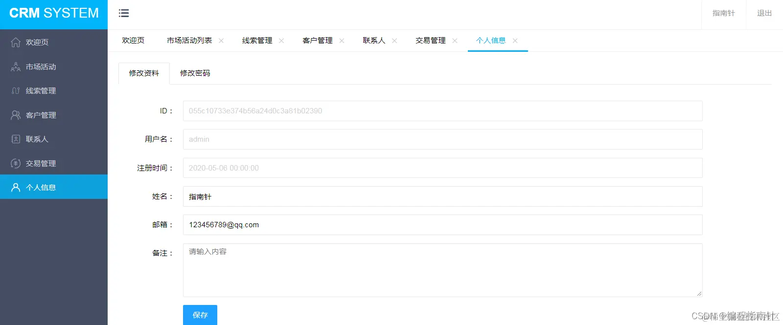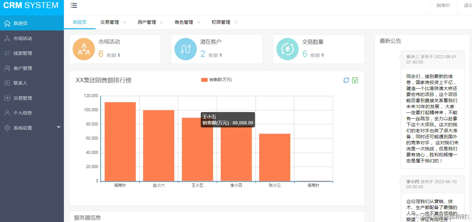 该项目主要基于JAVAWEB技术,开发了一套CRM客户关系管理系统,实现了用户登录,权限控制,数据统计,以及市场活动、线索、客户、联系人、合同的CRUD,使用Proxy实现Service层的动态代理,实现DAO层事务控制。