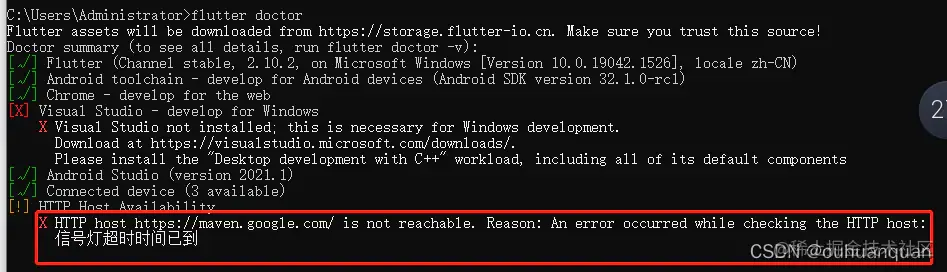 5、在cmd命令窗口重新运行flutter doctor,问题解决。
