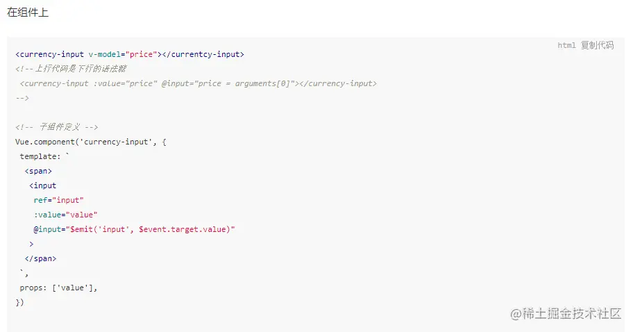 注意:在子组件直接用 v-model 绑定父组件传过来的 props 这样是不规范的写法,开发环境会报警告。