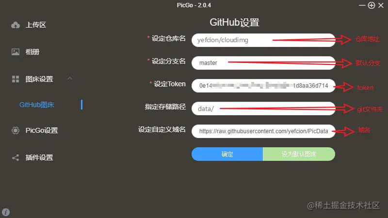 - 存储路径 这个可以填也可以不填,填了的话图片就上传到 git 中