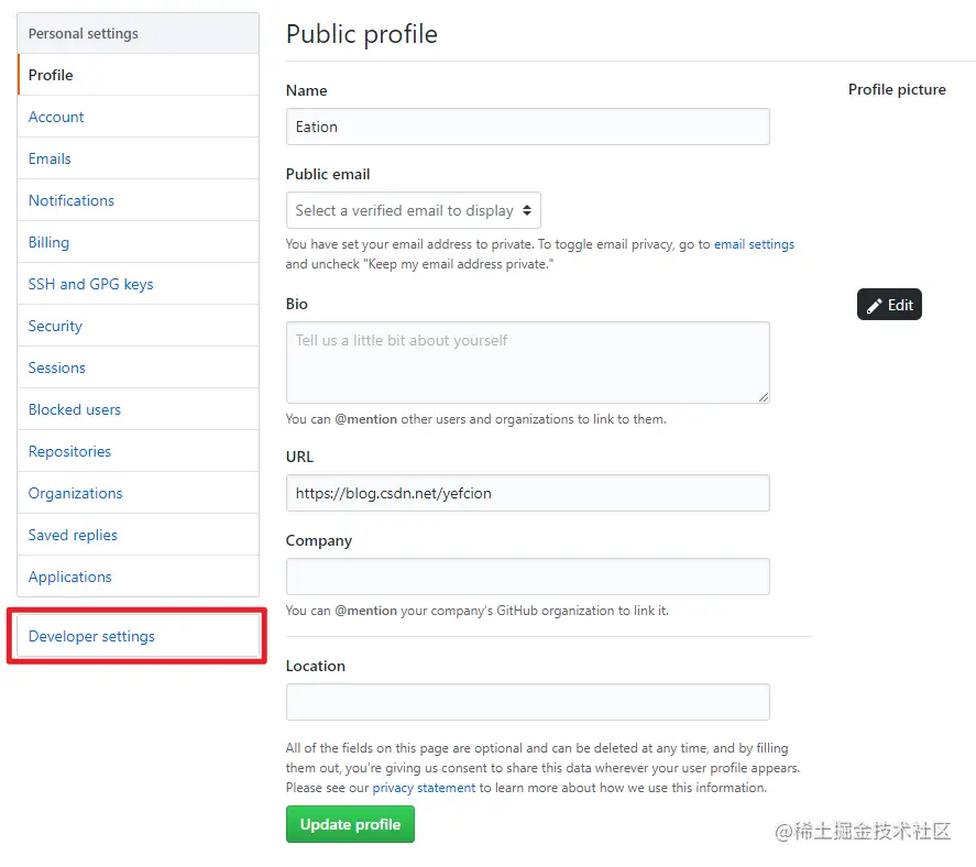 在页面最下找到 Developer settings,点击进入;