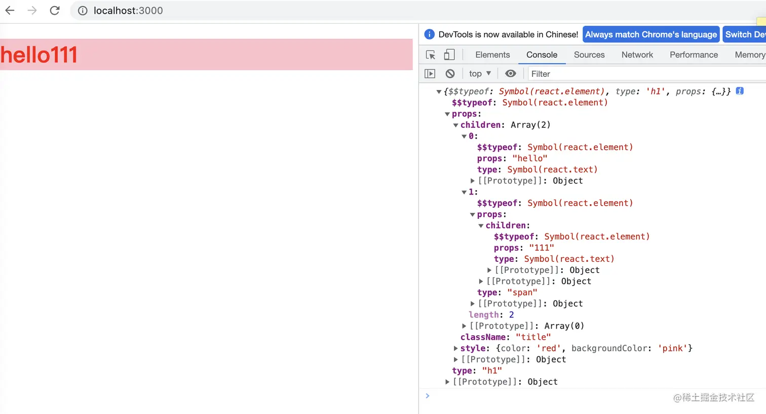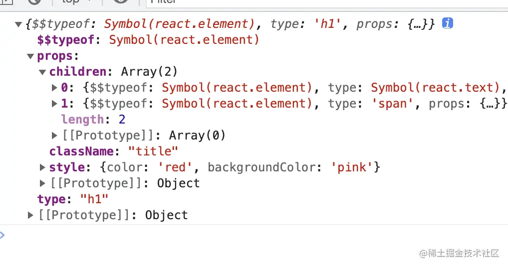 我们先看下原生 createElement 的返回结果