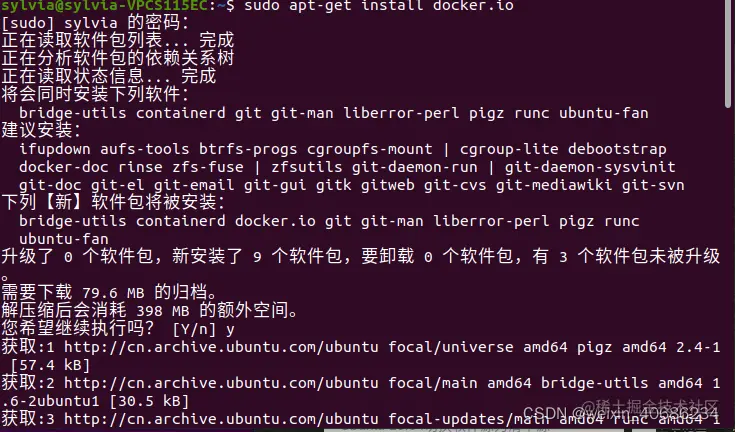 卸载:sudo apt-get remove docker docker-engine docker-ce docker.io