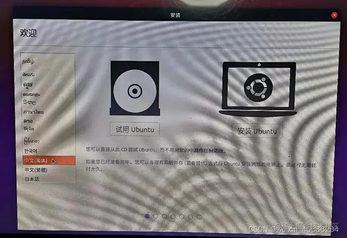 7.安装ubuntu,选择左侧的语言中文,点击安装ubuntu进入下一步,按照提示完成安装即可。