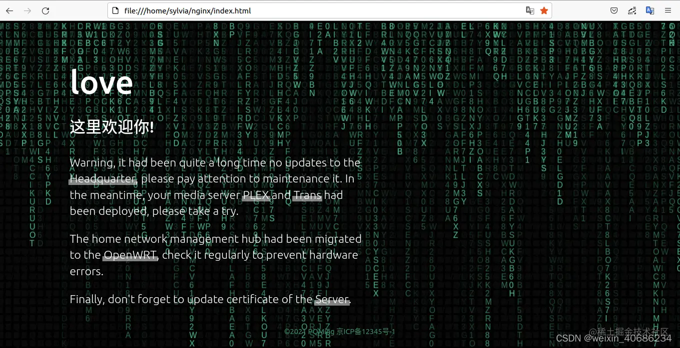 1.将 nginx 文件夹解压至 /home/你自己的用户名/ 之下