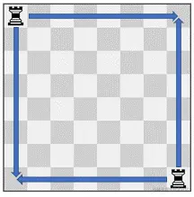 Note that there are two valid move combinations that would result in one rook at (1, 8) and the other at (8, 1).