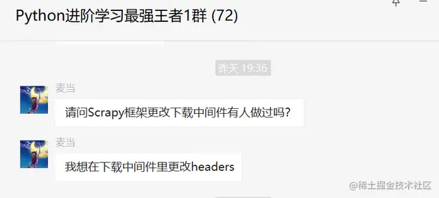 前几天在Python最强王者交流群有个叫【麦当】的粉丝问了一个关于Scrapy框架中如何更改下载中间件里的headers问题,这里拿出来给大家分享下,一起学习。