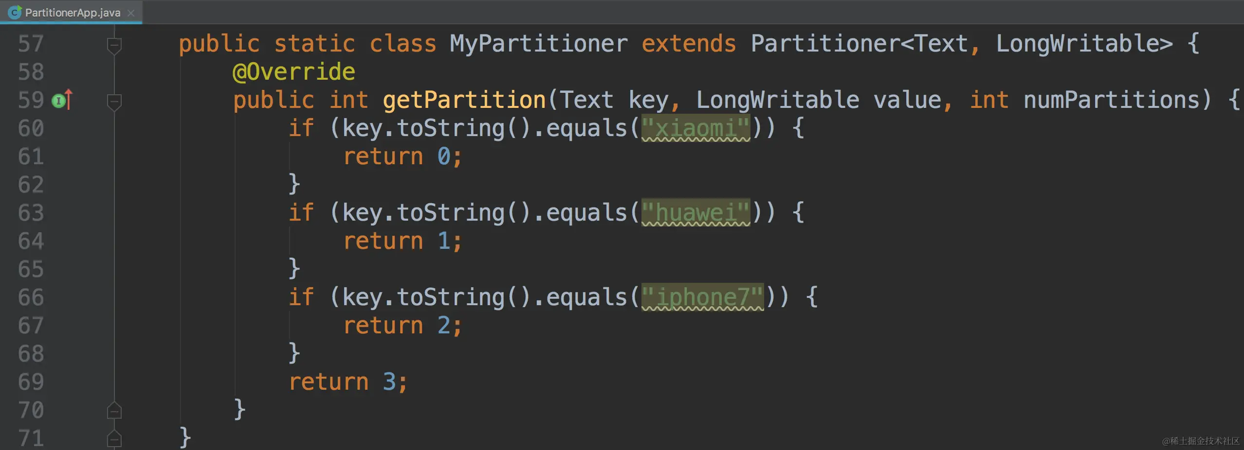 public int getPartition(K2 key, V2 value, int numReduceTasks) {