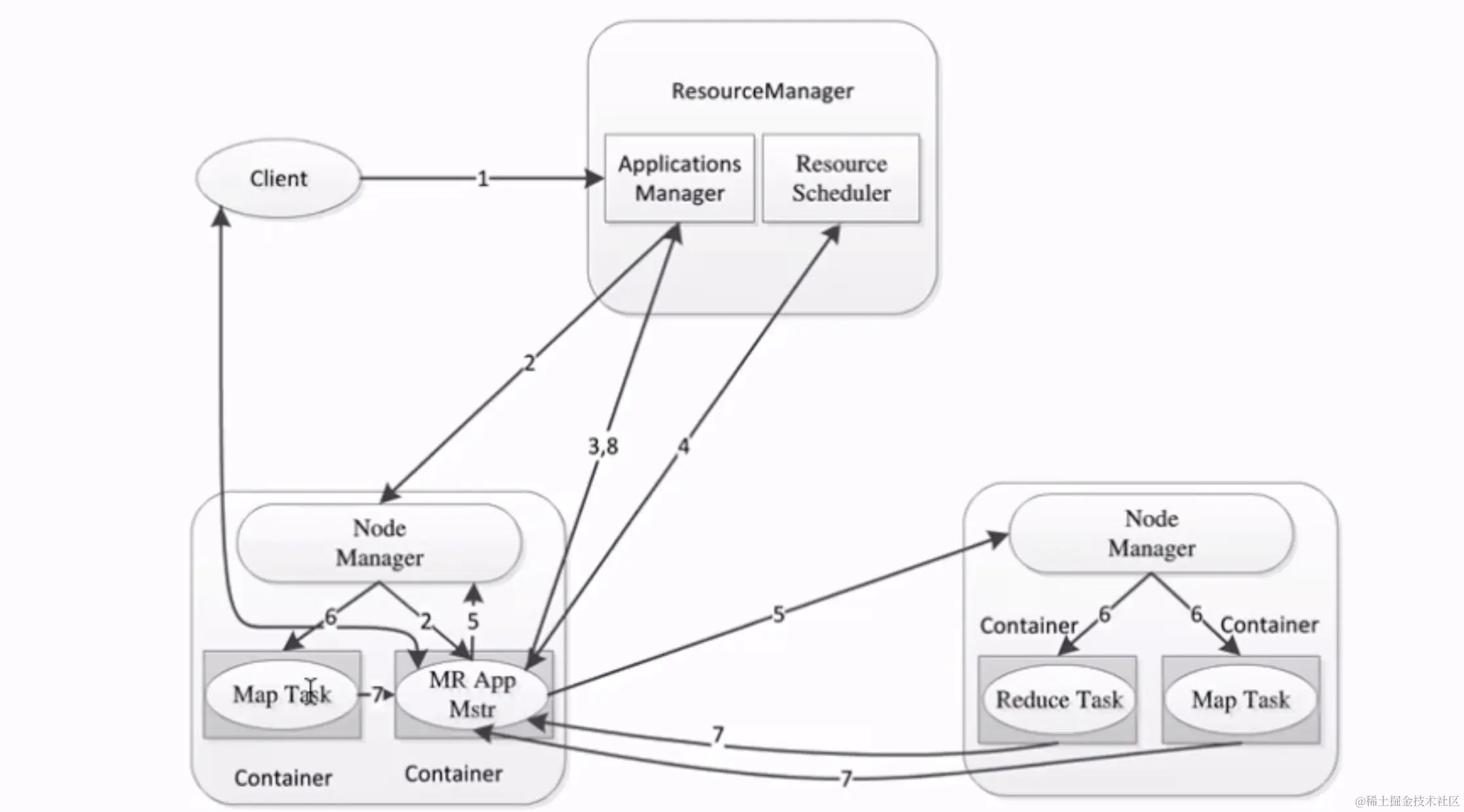 这俩问题对应MapReduce计算过程图中的两处“MapReduce框架处理”: