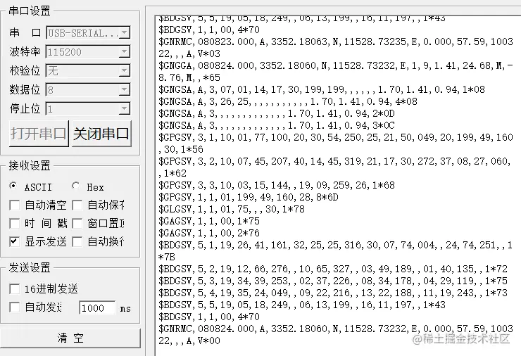 我们要想使用定位的数据,当然不可能像测试一样,用电脑的上位机看定位的数据,而往往是通过串口将数据发送到MCU上,之后查看数据或者对数据进行解析并使用。