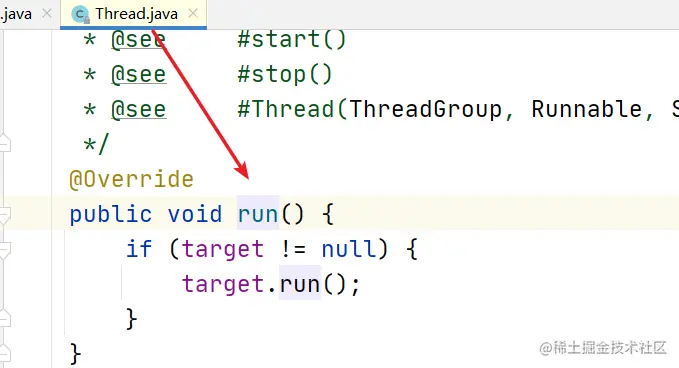 - 每个线程都是通过某个特定Thread对象的run()方法来完成操作的,因此把run()方法体称为