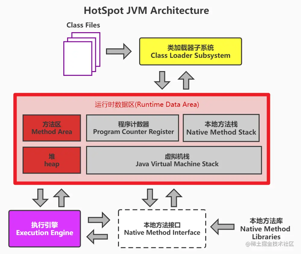 下图中,红框的灰色区域为线程独享,红色区域为线程共享。