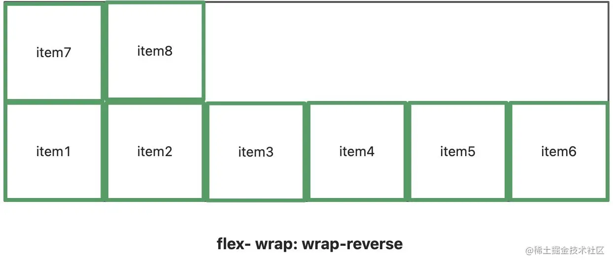 (3)、wrap-reverse: 从下到上换行, 第一行在最下面, 像这样👇🏻
