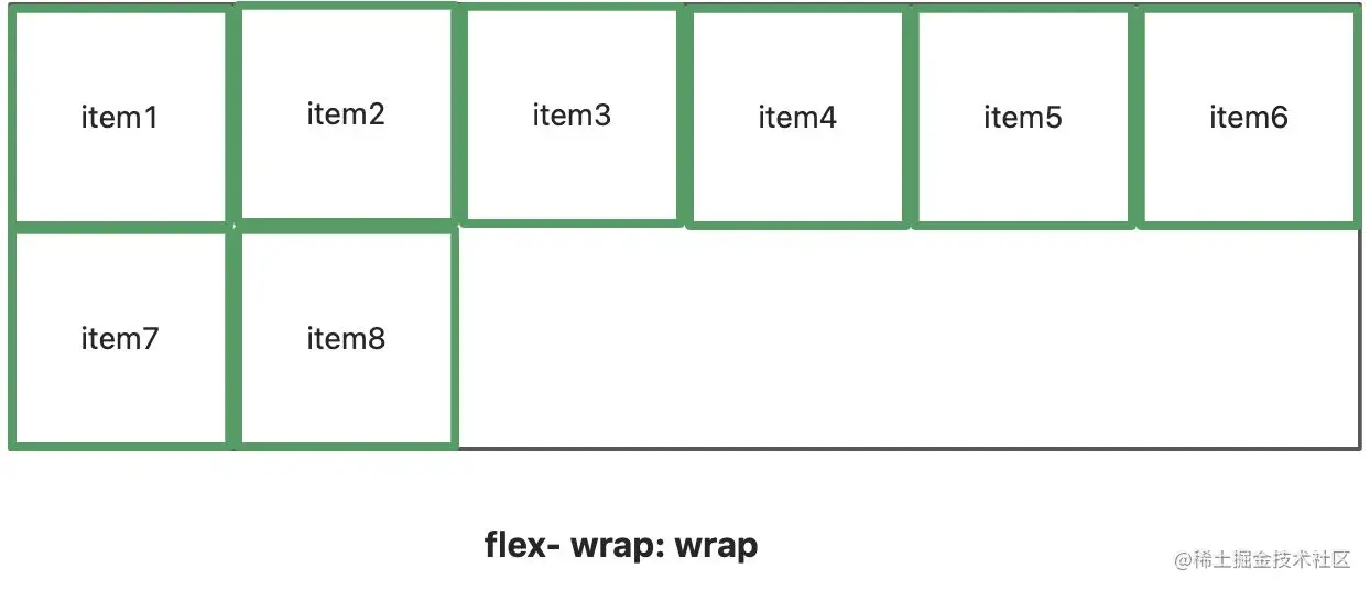 | flex-wrap | 当一条轴上放不下所有容器是,如何换行 |