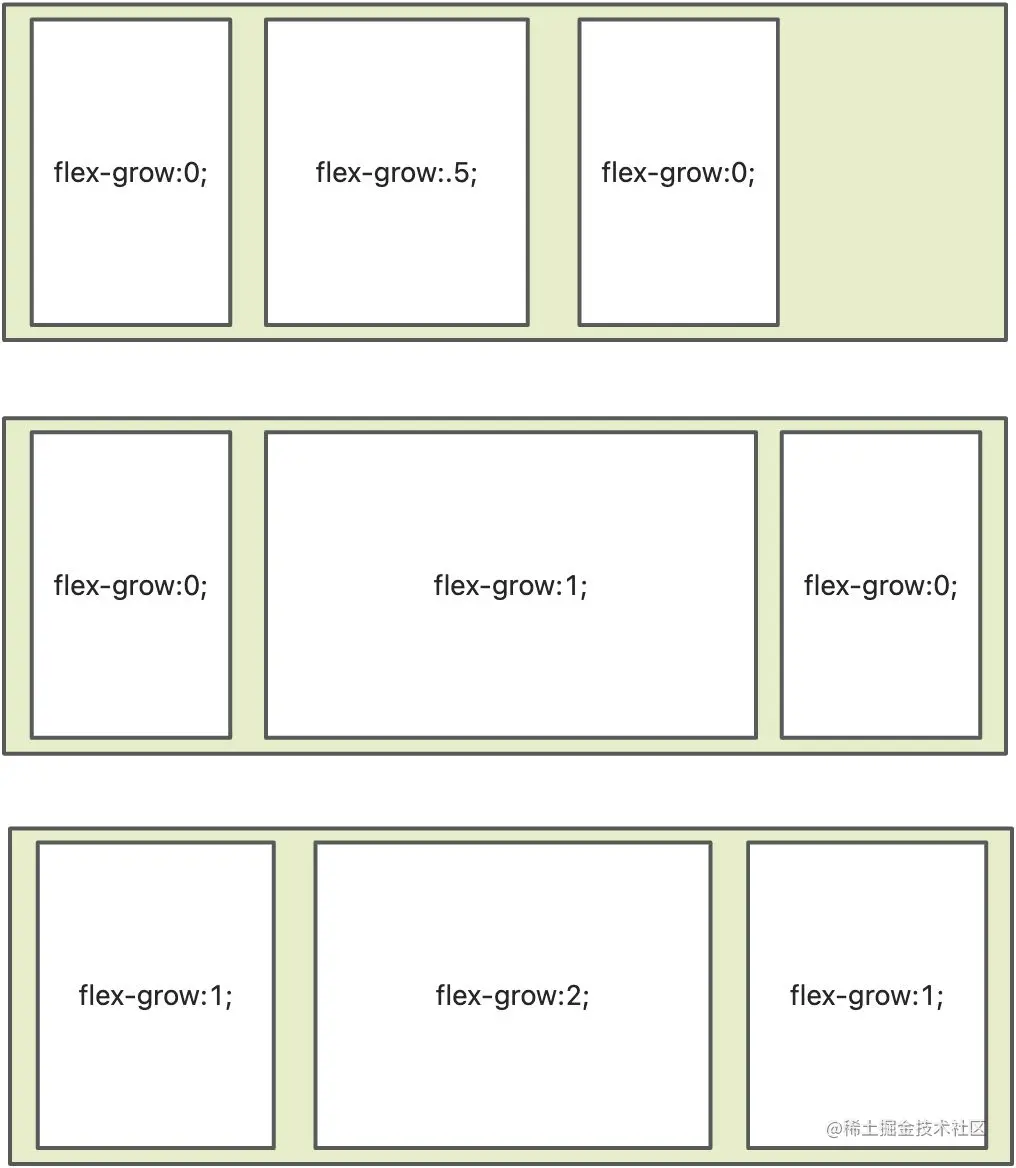 - flex-grow属性值 0 - 1 之间的小数, 那么拓展的空间就是剩余空间✖️小数