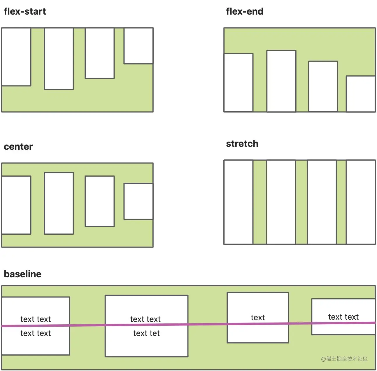 align-items 的5个属性值分别有以下作用