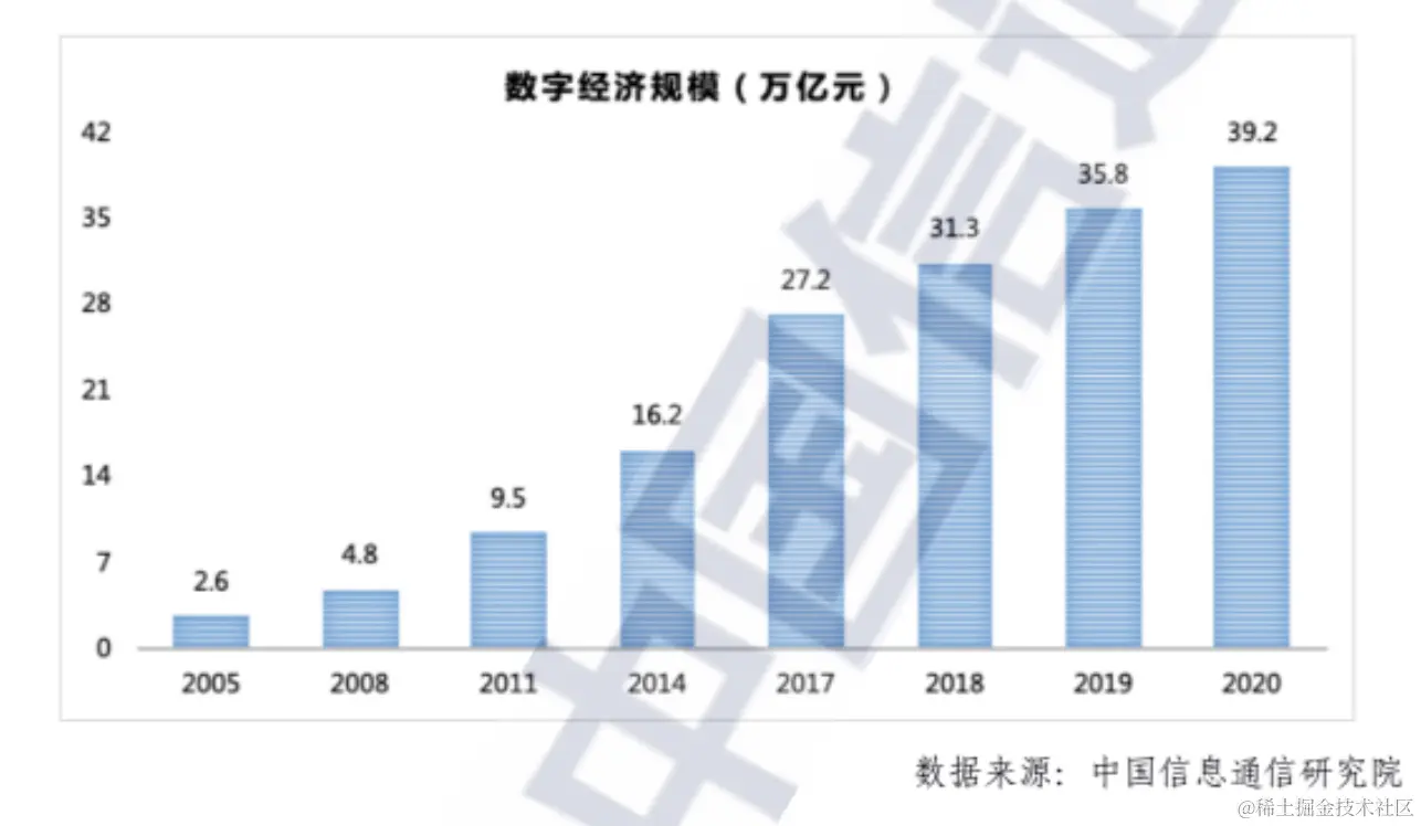近两年,从中国信息通信研究院近三年发布的《中国数字经济发展与就业白皮书(2019年)》、和《中国数字经济发展白皮书(2020年)》、《2021年中国数字经济发展白皮书》中可见,我国数字经济疫情中逆势崛起。2020 年,我国数字经济延续蓬勃发展态势,规模由2005年的2.6万亿元扩张到39.2万亿元。伴随着新一轮科技革命和产业变革持续推进,叠加疫情因素影响,数字经济已成为当前最具活力、最具创新力、辐射最广泛的经济形态,是国民经济的核心增长极之一。