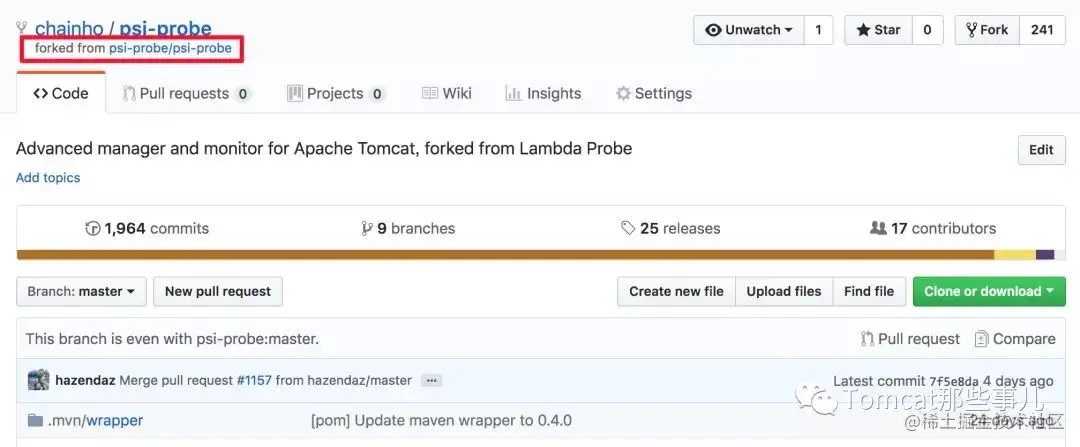 不久, Fork 成功后,这个项目会显示在你个人的 Repository 中。同时显示从哪Fork出来的。可以方便的进行源的跟踪。