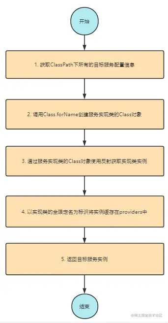 - 获取线程上下文的 ClassLoader: 由于 ServiceLoader 是在 rt.jar 下的,而接口实现类是在 classpath 下面,这打破了双亲委派模型,所以需要从线程上下文中获取 AppClassLoader 用于加载目标接口及其实现类。