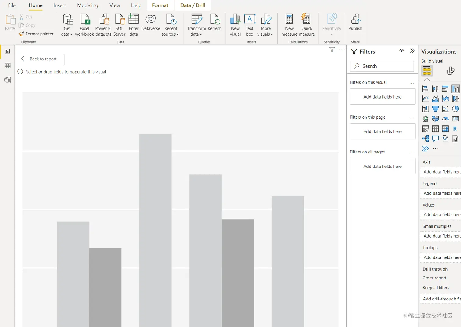 接下来就可以愉快的进行PowerBI的设计工作啦,进行专业的BI和报表的设计~~