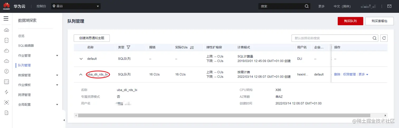 DLI的库和SQL队列环境如下: