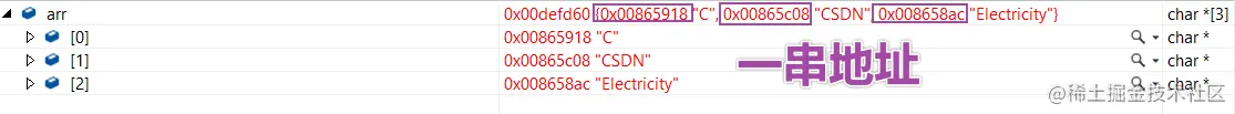 char *arr[3] = { "C", "CSDN", "Electricity" };